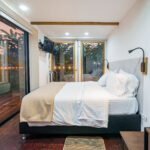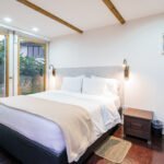 Esta habitaciòn tipo glamping, cuenta con un container de 21 metros al cual se le integraron una terraza en la primera planta de 23 metros y un mirador en el segundo piso de uso privado de 22 metros, lo cual le permite al visitante disponer en forma exclusiva de un espacio de 66 metros cuadrados.